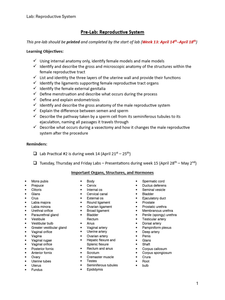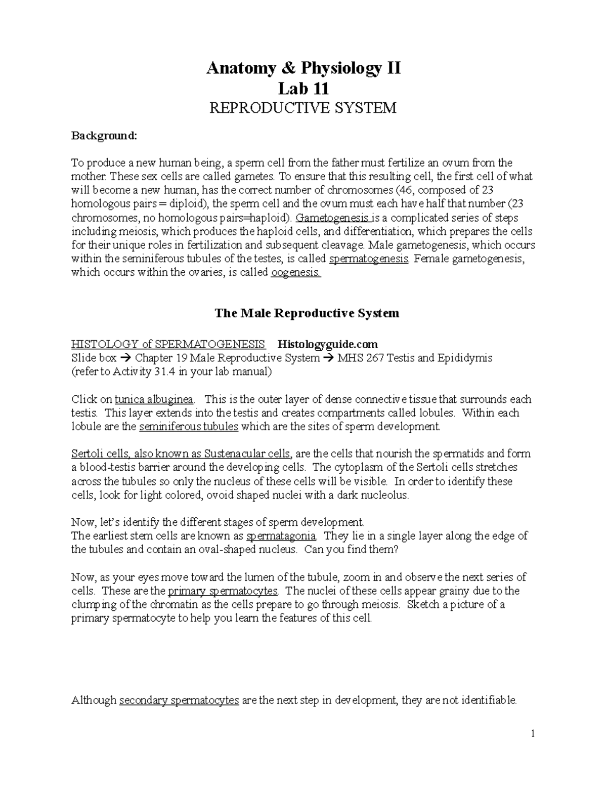 Reproductive System notes and practice work - I. Introduction The lab ...