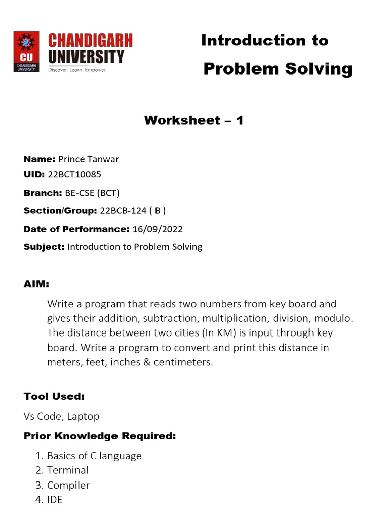 Problem Solving 22BCT10085 | PDF