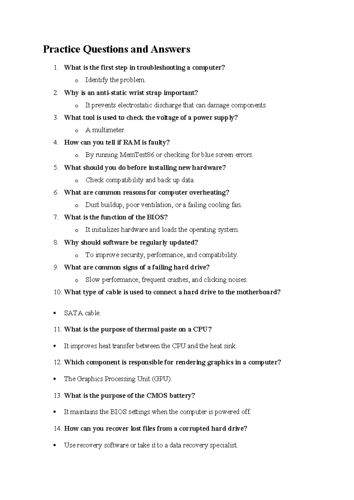 IT 101: Practice Questions & Answers on Computer Troubleshooting - Studocu