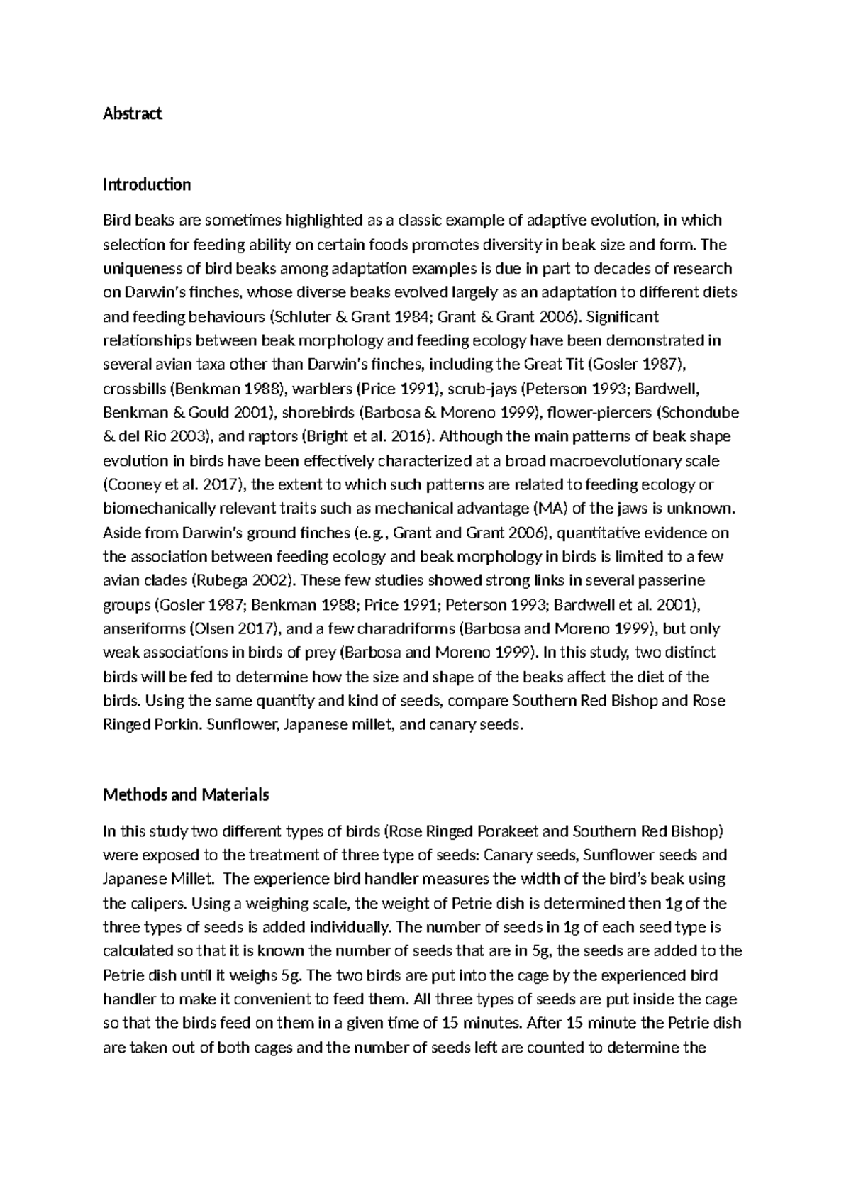 Practical Report - Abstract Introduction Bird beaks are sometimes ...