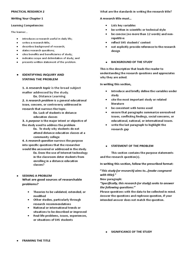 PRACTICAL RESEARCH 1 EXAMPLE FOR STUDENTS - CHAPTER 1 THE PROBLEM AND ...