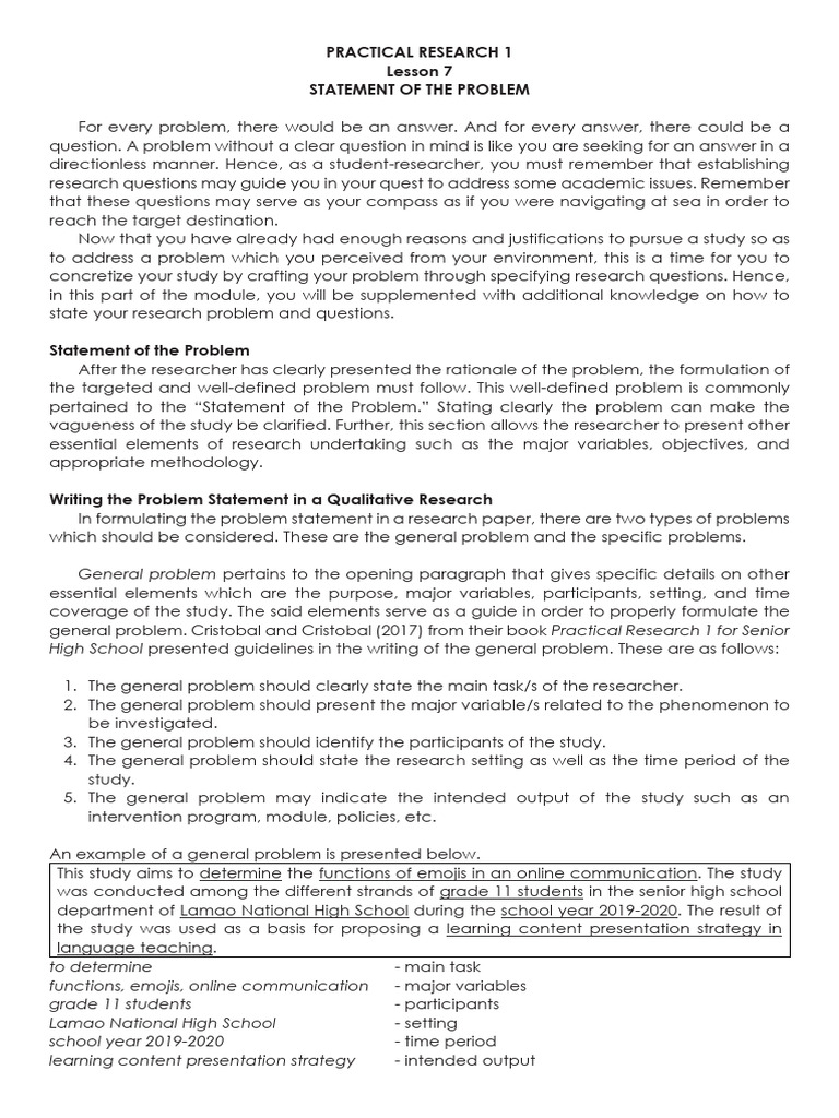 07 Practical Research 1 - Statement of The Problem | PDF | Question ...