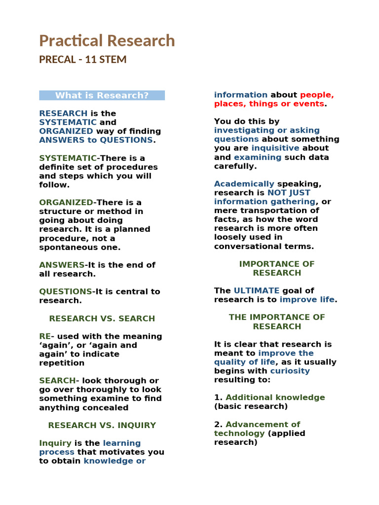 Practical Research 1 - notes - PracticalPractical ResearchResearch 1 1 ...