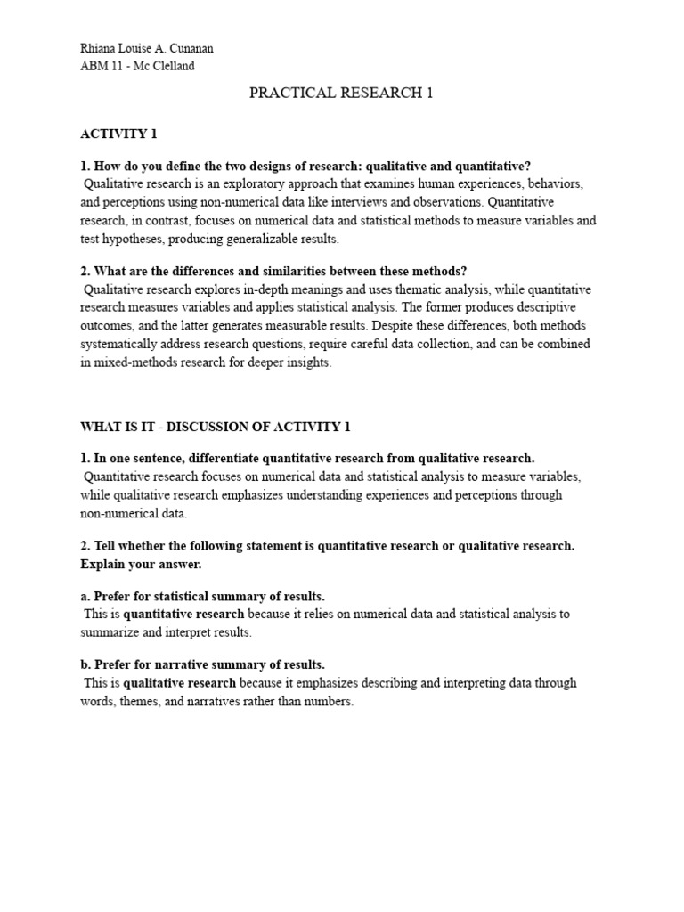 Practical Research 1 | PDF | Quantitative Research | Qualitative Research