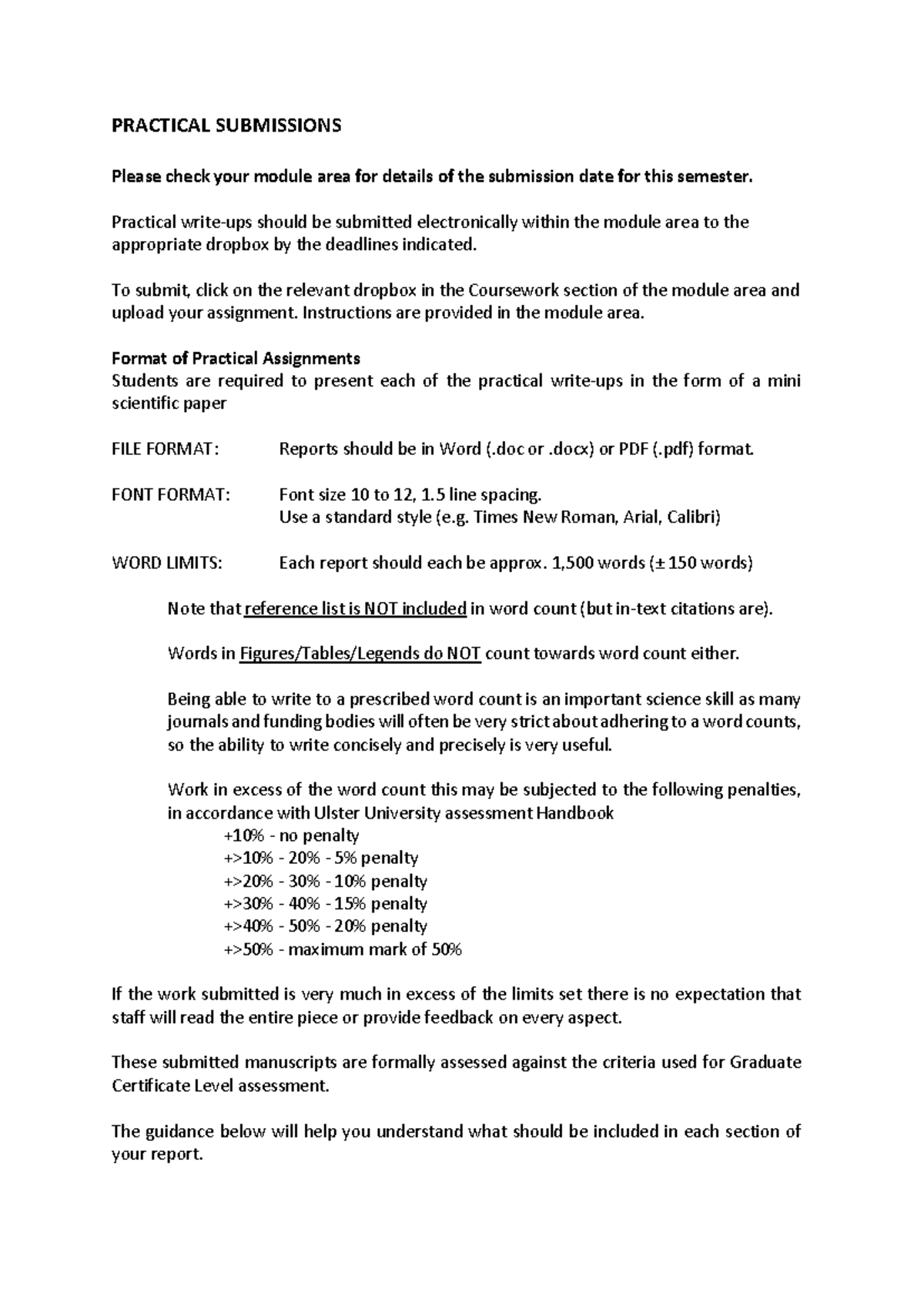 BMS 514 Guidelines for Practical Report Write-Up Submission - Studocu