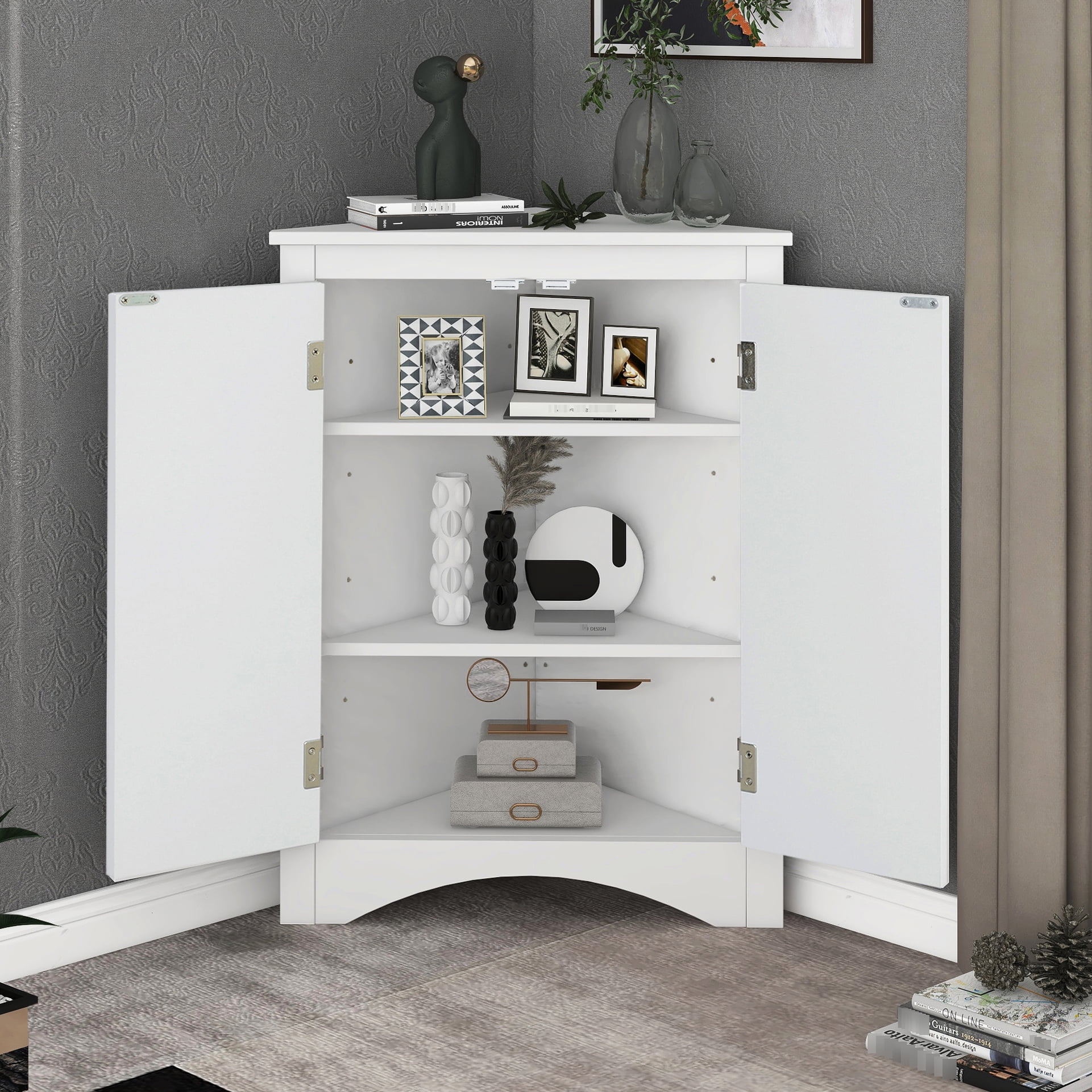 White Triangle Bathroom Storage Cabinet With Adjustable Practicality ...
