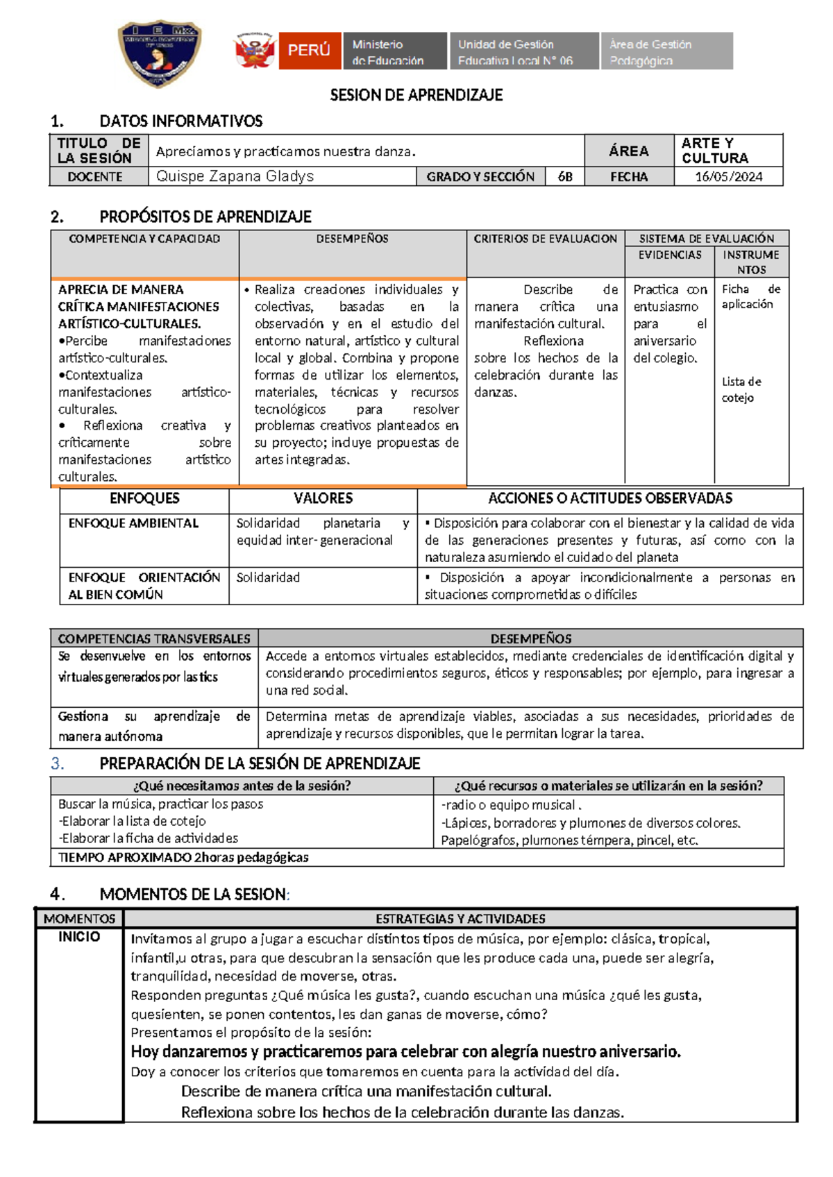 A y C 6B: Apreciamos y Practicamos Nuestra Danza - Sesión de ...