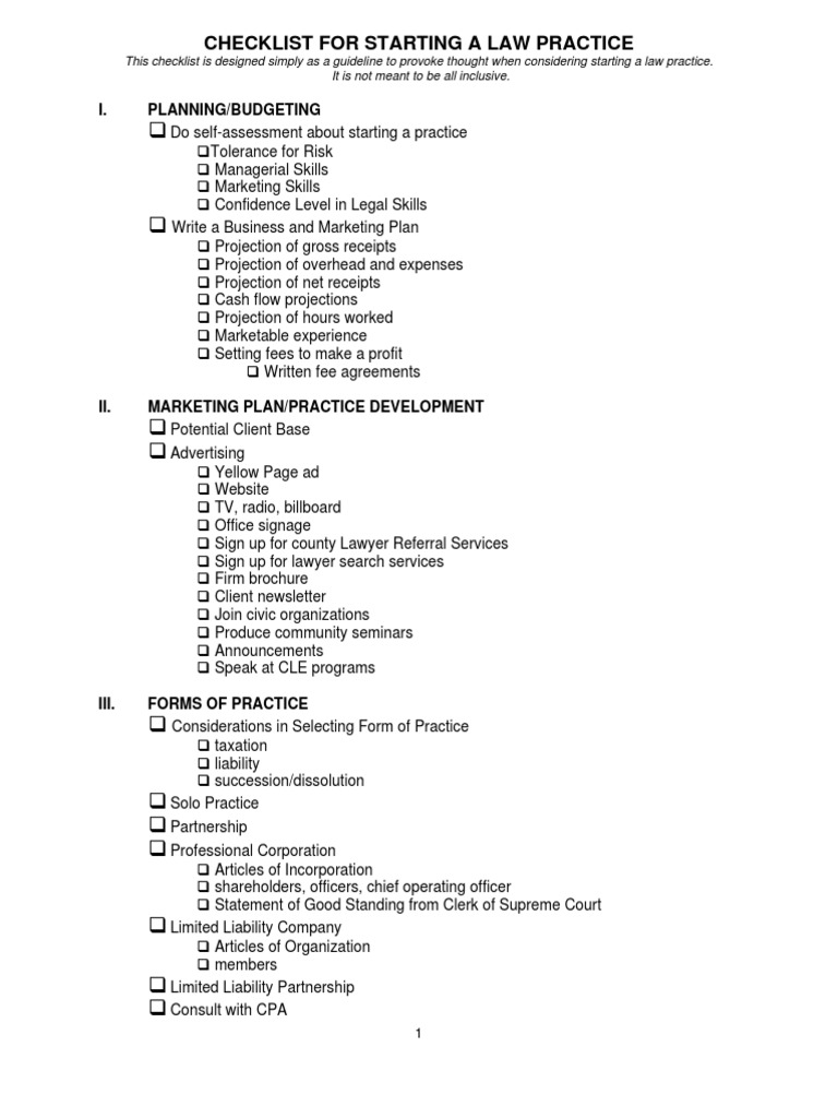 Checklist For Starting A Practice | PDF | Paralegal | Partnership