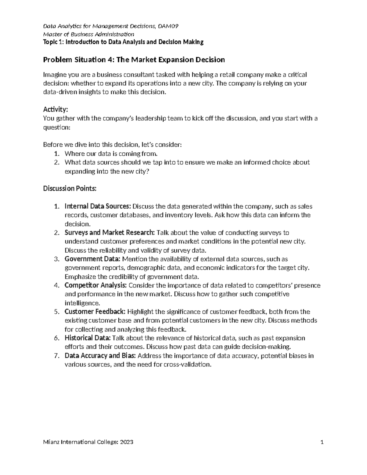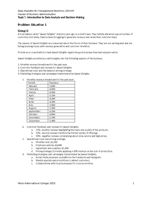 Problem Situation 5 - Practice - Data Analytics for Management ...