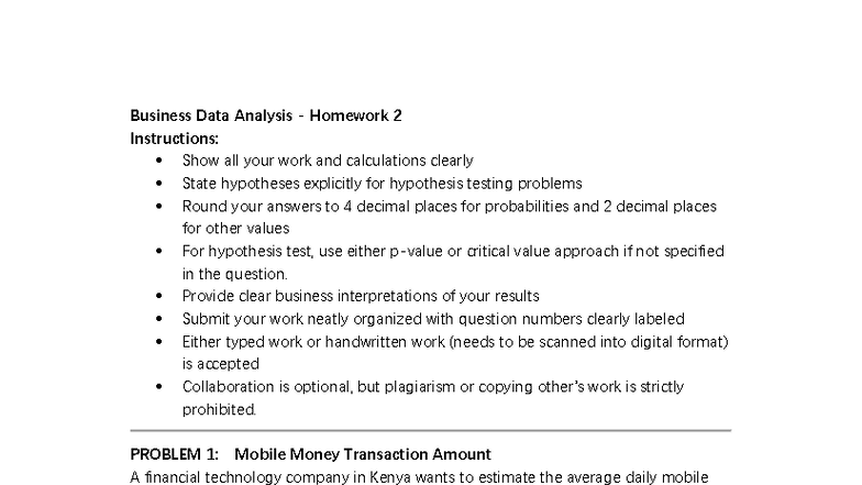 BDA2025 Homework 2: Business Data Analysis Problems and Solutions - Studocu