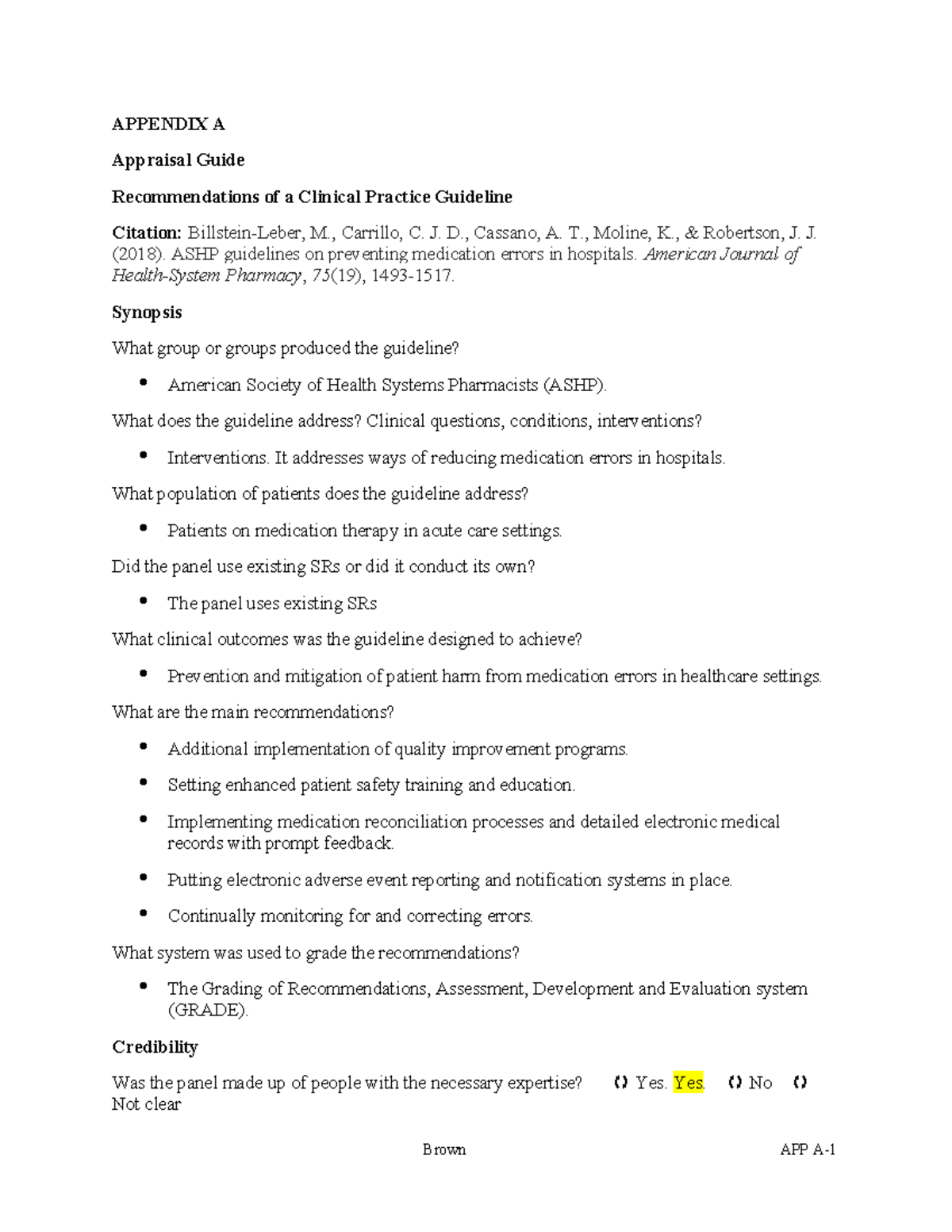 Clinical Practice Guideline Template.docx - APPENDIX A Appraisal Guide ...