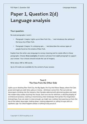 Language Analysis (Q2) for IGCSE First Language English - Taughtly