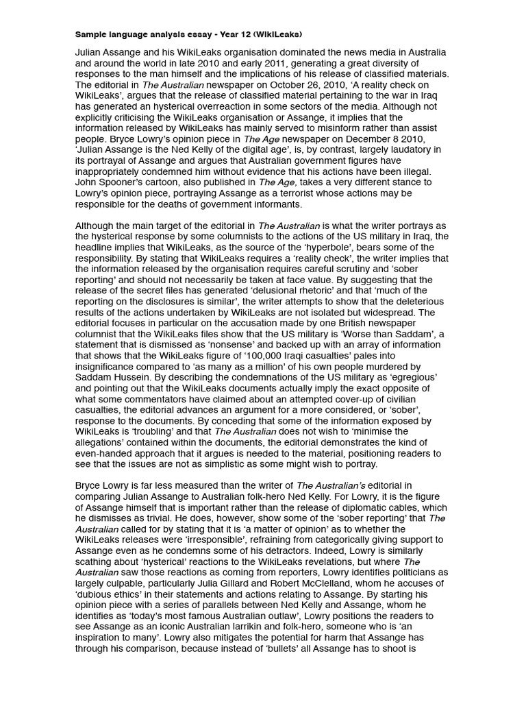 Sample Language Analysis - Wikileaks-1 | PDF | Wiki Leaks | History