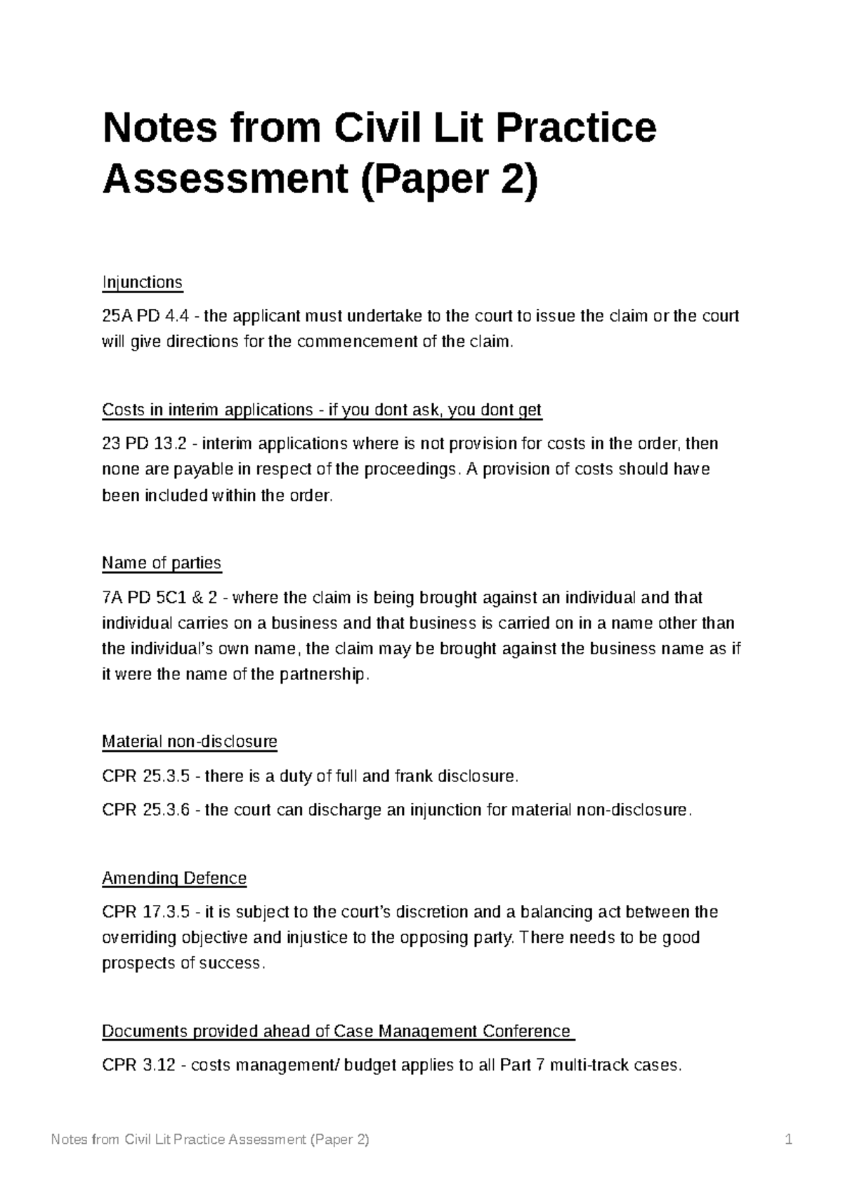 General Notes from practice assessments - Notes from Civil Lit Practice ...