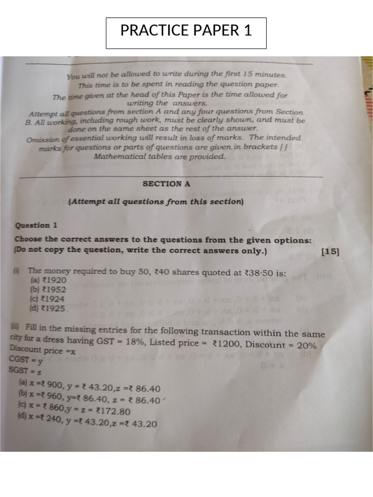 Practice-Paper-1 - practice paper - Practice Paper 1 Section I Attempt ...