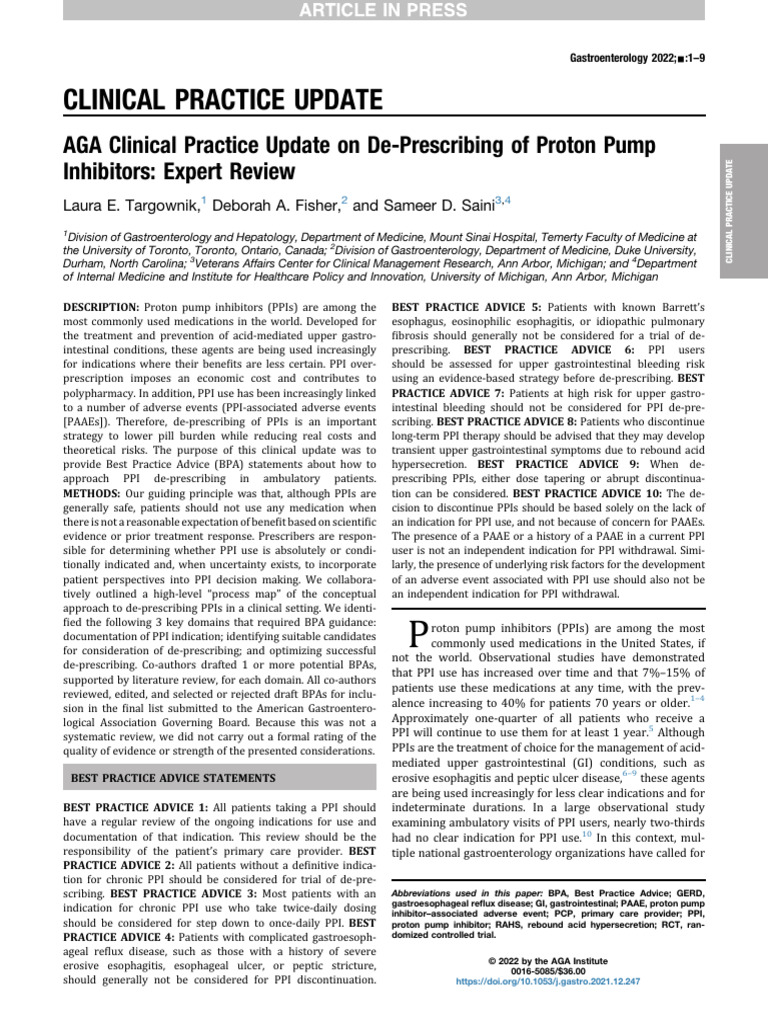 AGA 2022 - AGA Clinical Practice Update on De-Prescribing of Proton ...