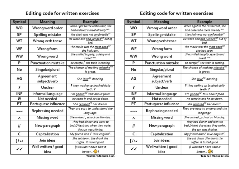 Symbols For Correcting Writing Mistakes