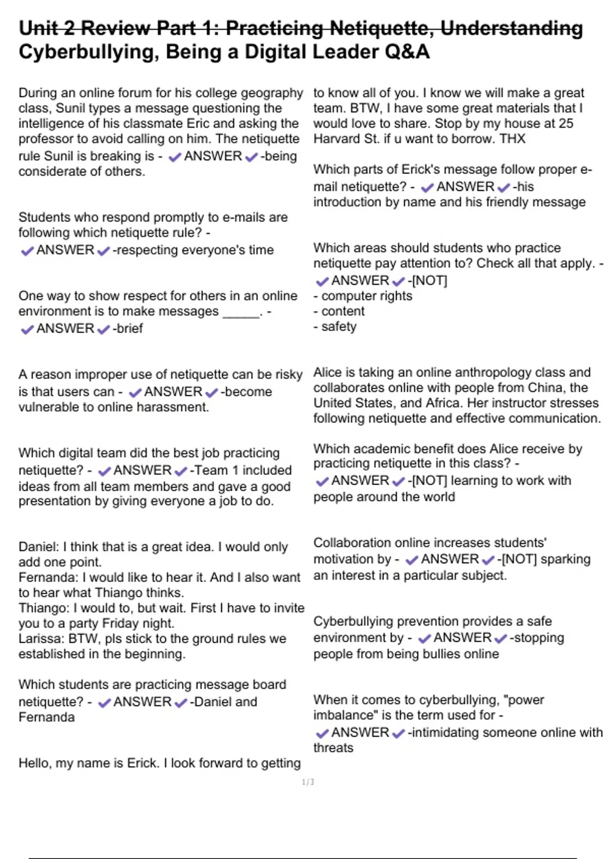 Unit 2 Review Part 1: Practicing Netiquette, Understanding ...