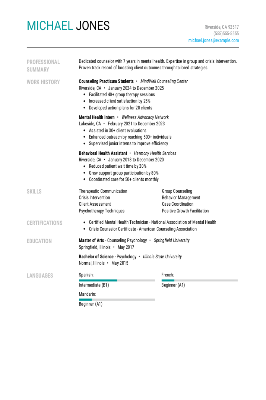 4 Counseling Practicum Students Resume Examples, Templates, & Tips for 2026