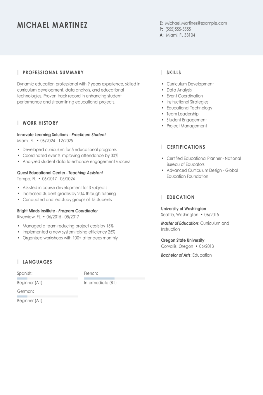 Sample Practicum Resume