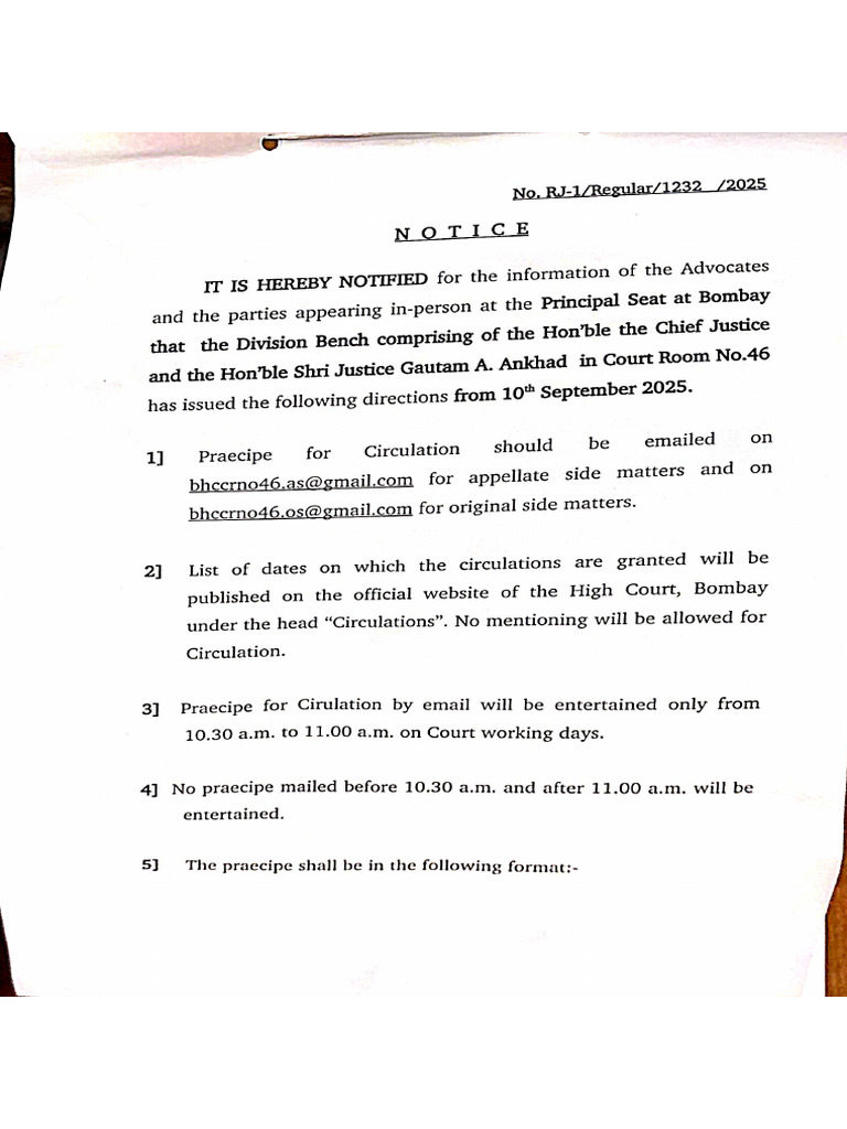 Praecipe - MENTIONING IN COURTS - To, Registrar, Bombay High Court Sub ...
