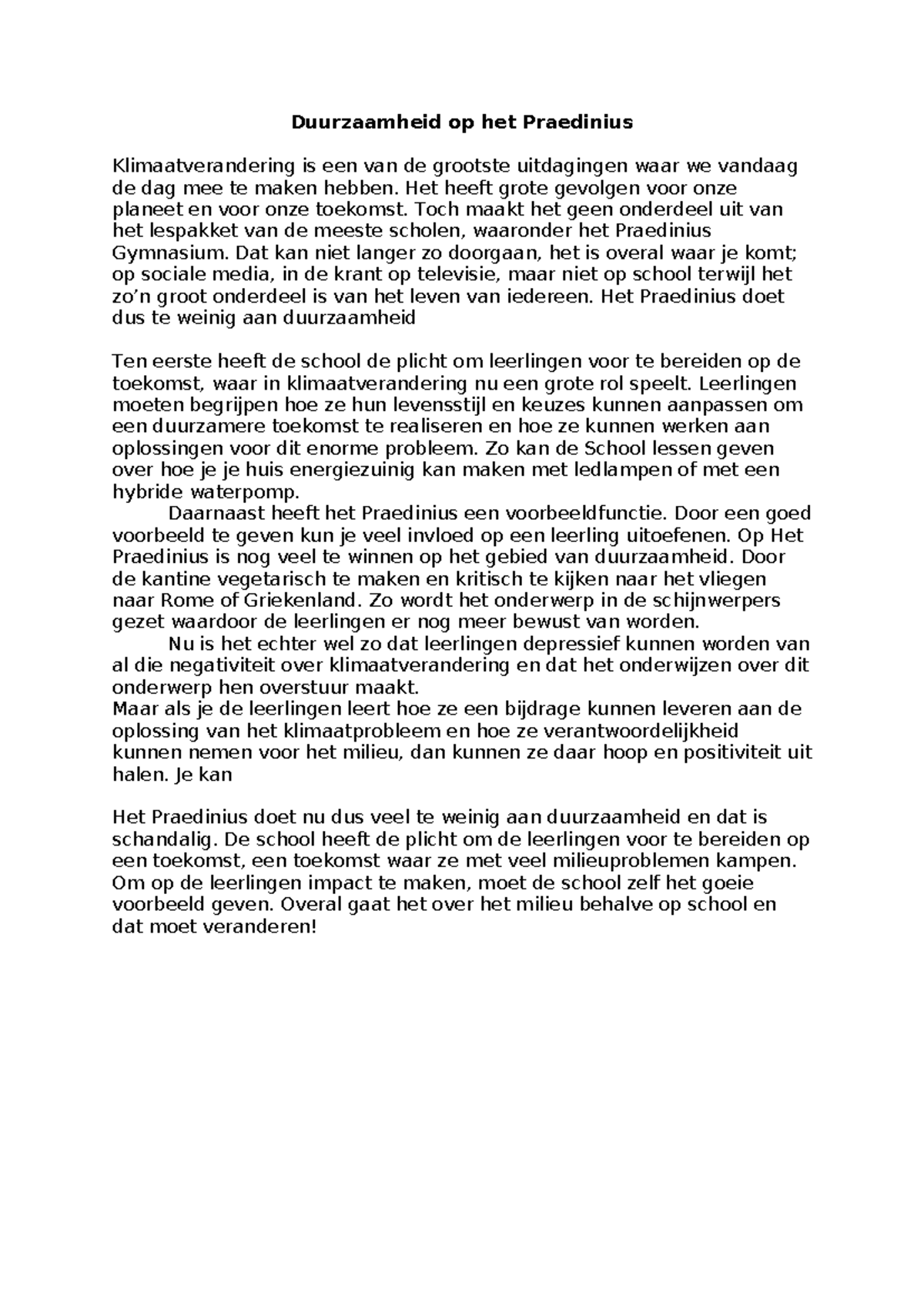 Betoog nederlands - Duurzaamheid op het Praedinius Klimaatverandering ...
