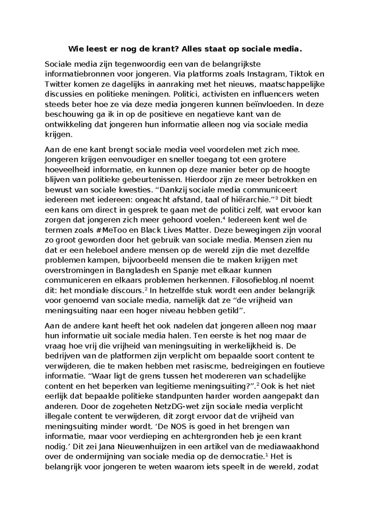 VWO 6 Oefenbeschouwing: De Impact van Sociale Media op Jongeren ...