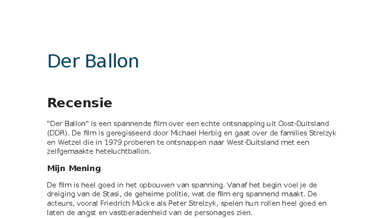 Kritische Recensie van de Film "Der Ballon" - Een DDR Drama - Studeersnel