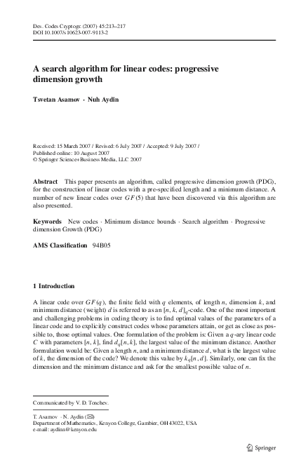 (PDF) A search algorithm for linear codes: progressive dimension growth