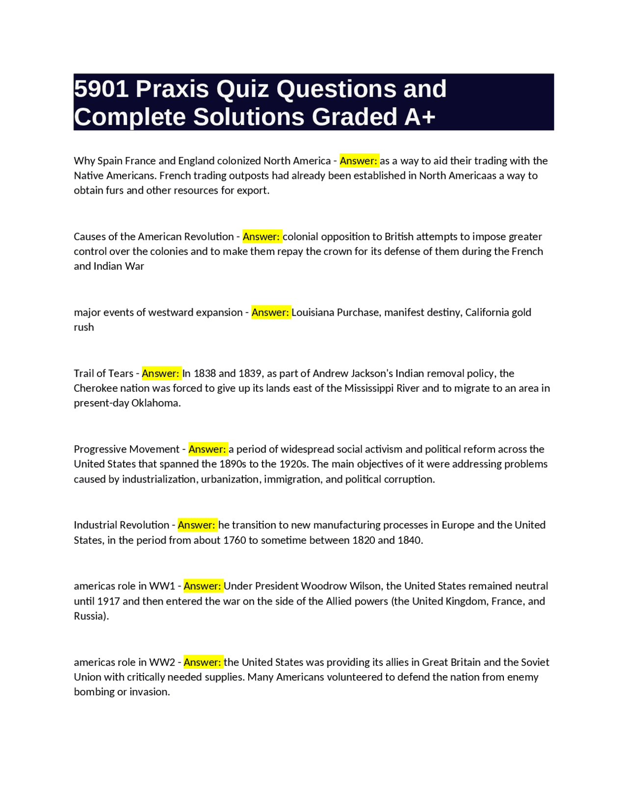 PRAXIS: Social Studies (5004) |55 Questions with 100% Correct Answers ...