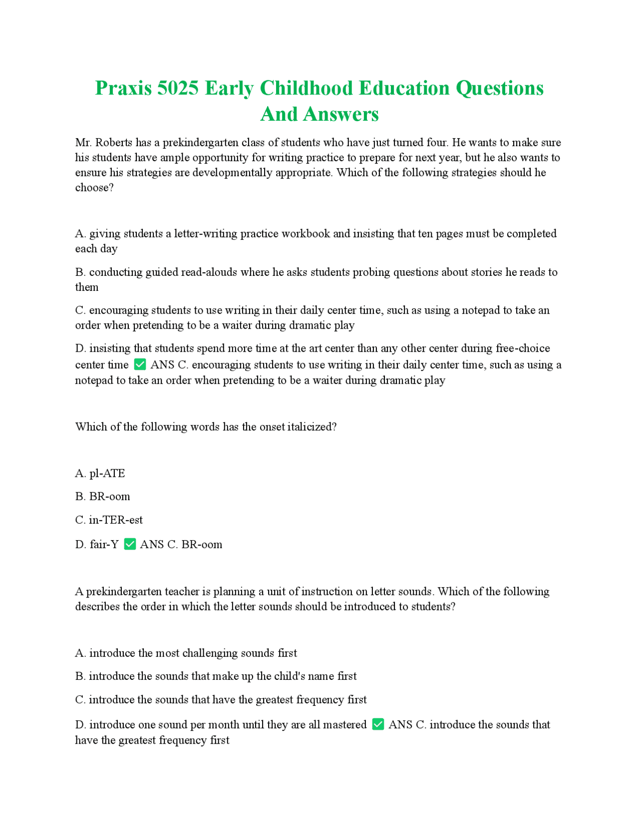 Praxis 5025 Early Childhood Education: Practice Questions and Answers ...