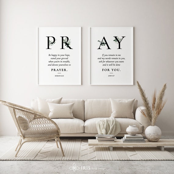 Pray Bible Verse Wall Art Set Scripture Set of 2 Modern | Etsy