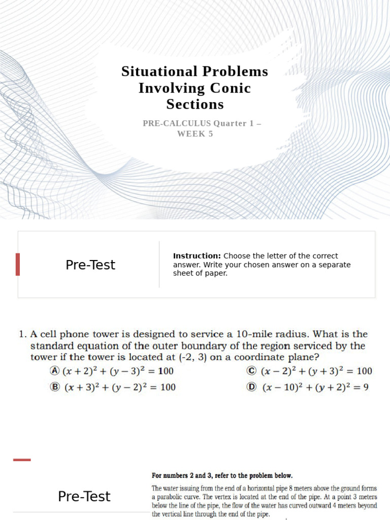 PRE-CALCULUS (Lesson 1-Conic Sections and Circles).pptx | Geography ...
