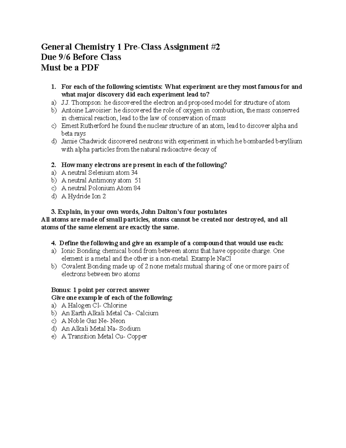 Chem pre 2 - Pre class assignment - General Chemistry 1 Pre-Class ...
