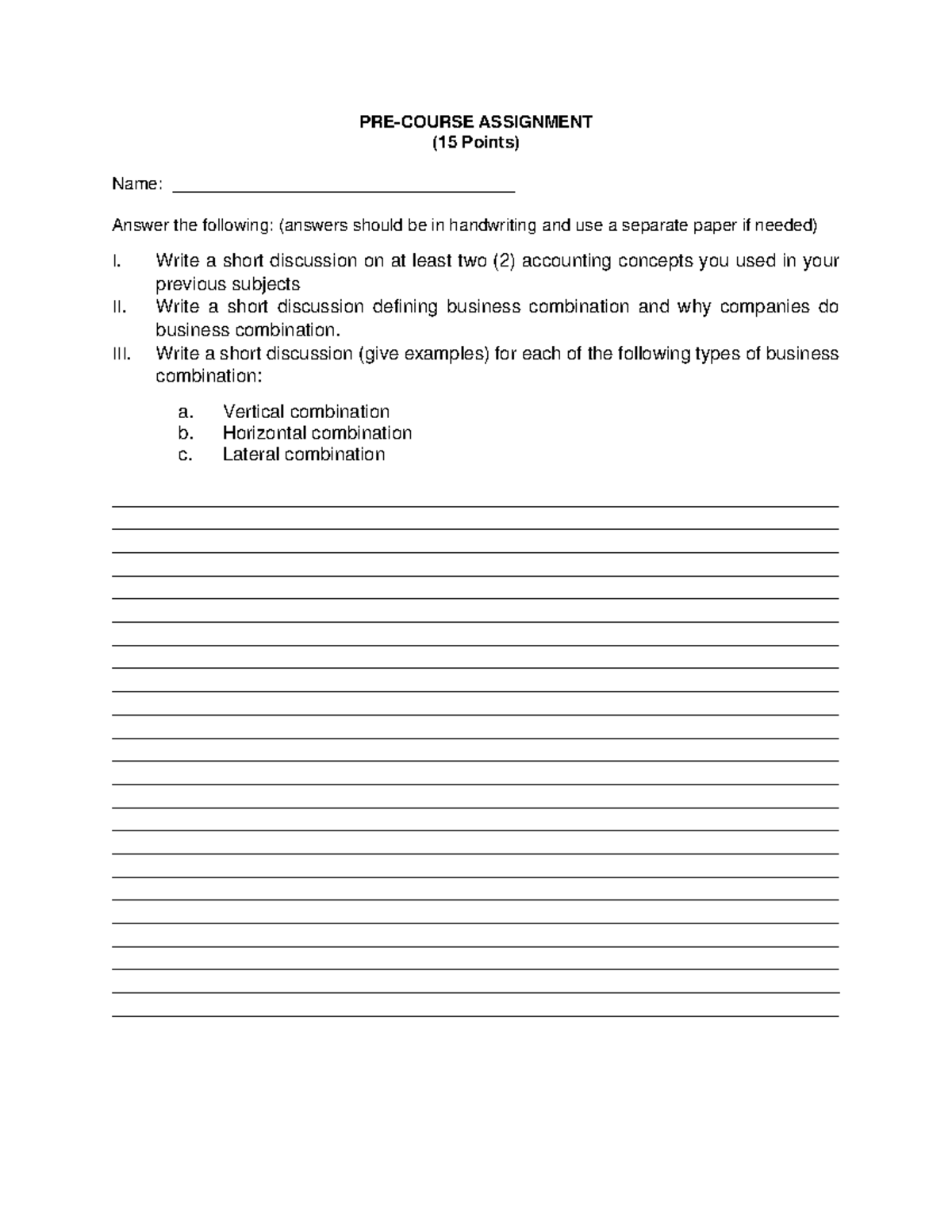 PRE- Course Assignment - PRE-COURSE ASSIGNMENT ( 15 Points) Name: - Studocu