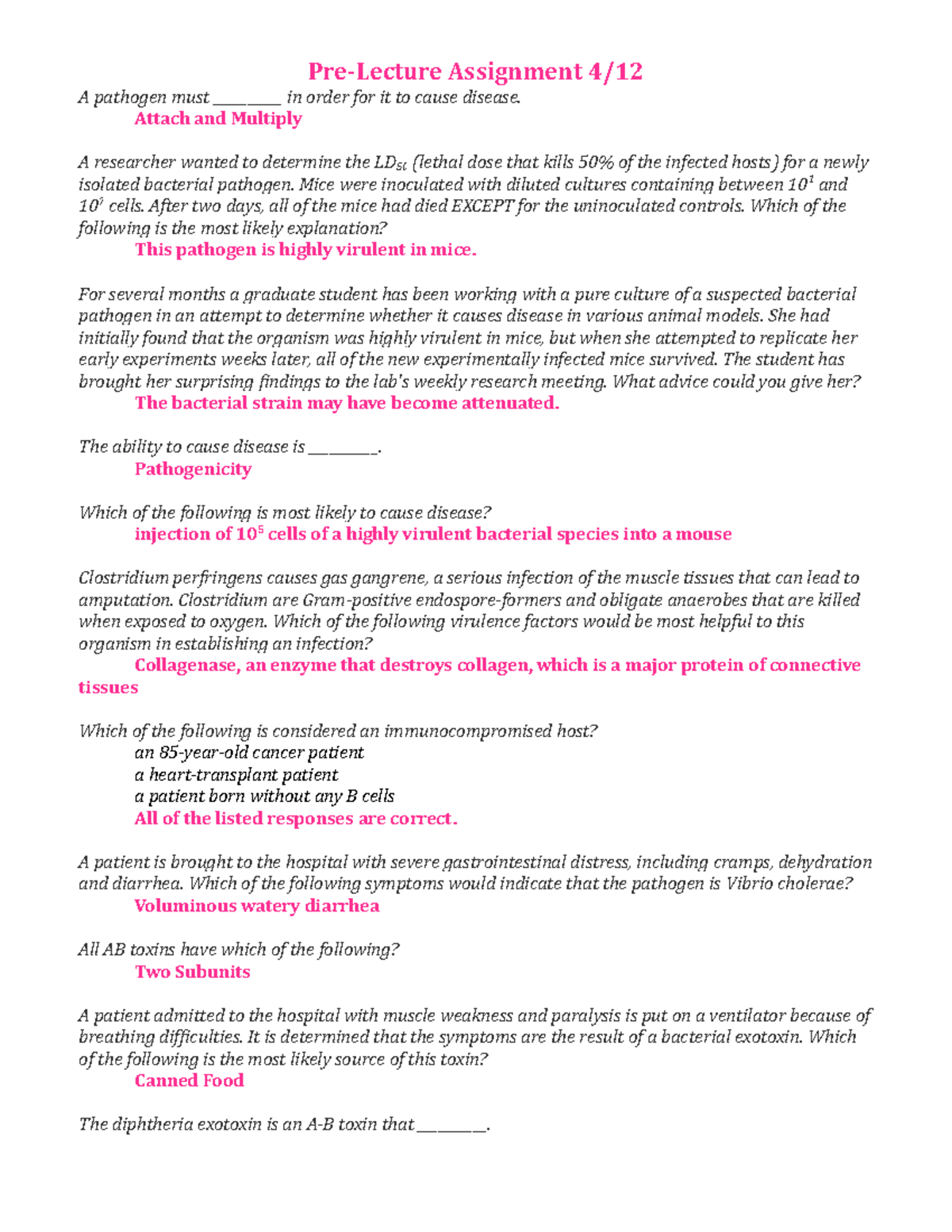 Pre Lecture Assignment 4:12 - Pre-Lecture Assignment 4/12 A pathogen ...