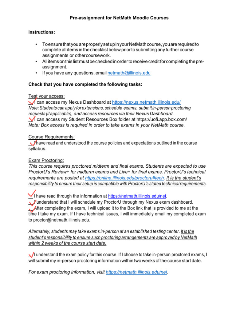 NetMath Course Pre-Assignment Checklist | PDF