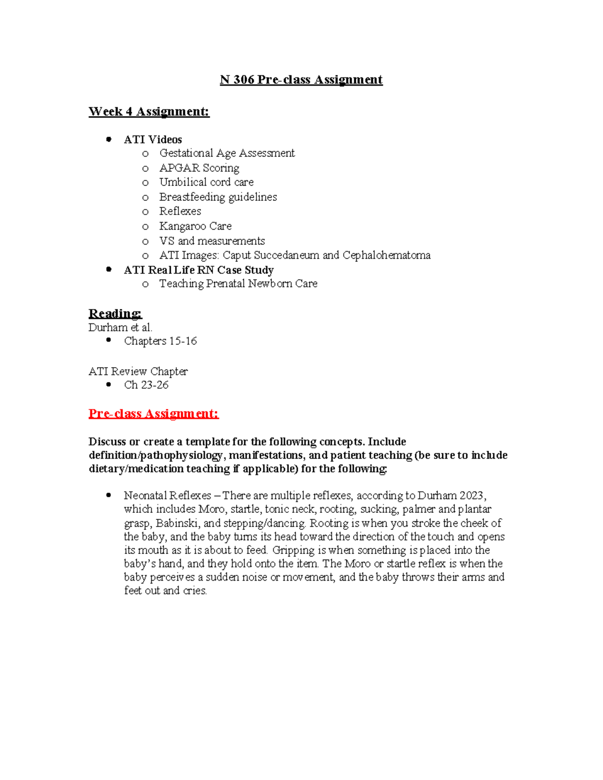 N306 Week 4 PCA-1 - Pre-class assignment to get into class. - N 306 Pre ...