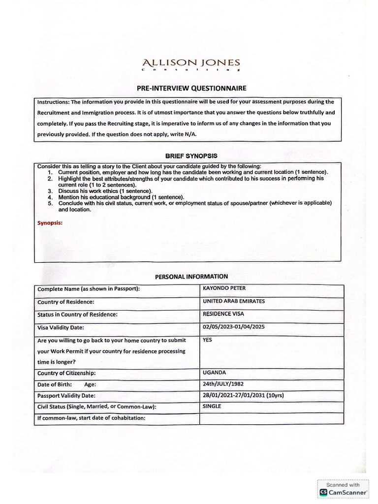Pre-interview Questionnaire Template, Candidate Pre-interview Questions ...