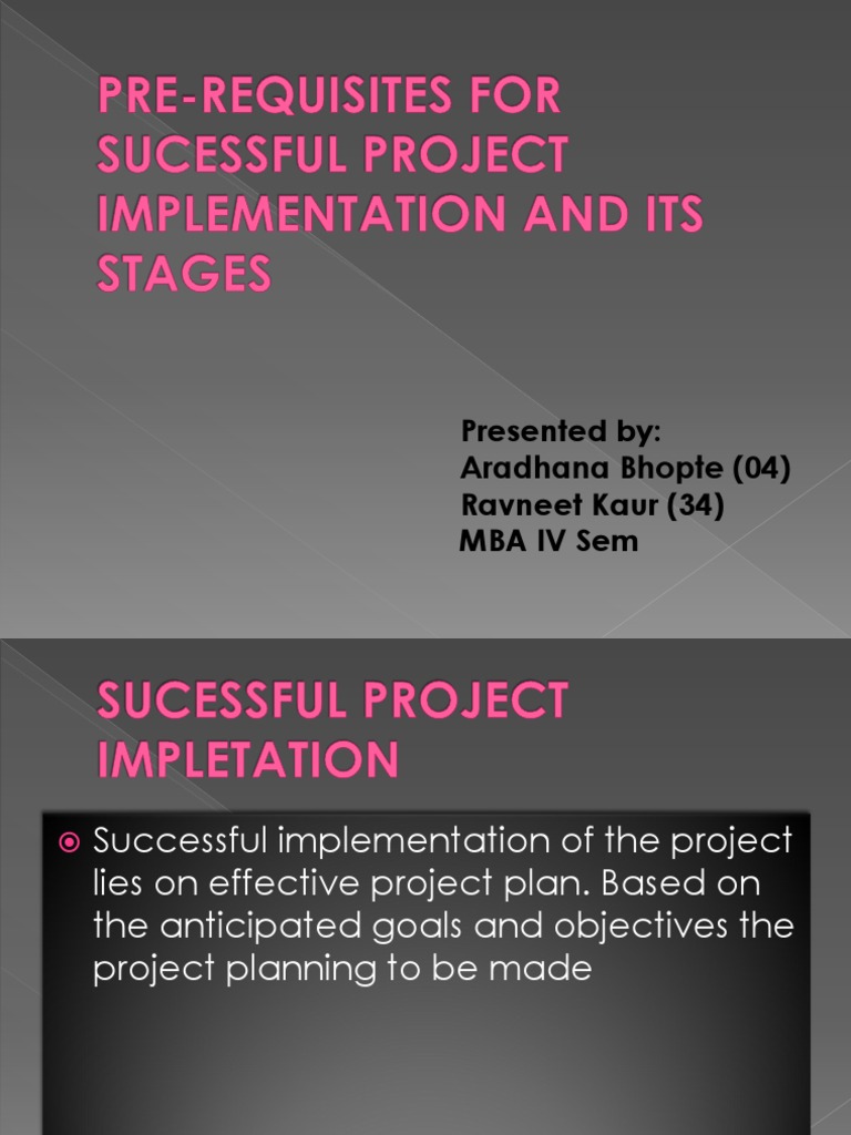 Pre-Requisites For Sucessful Project Implementation and Its Stages ...