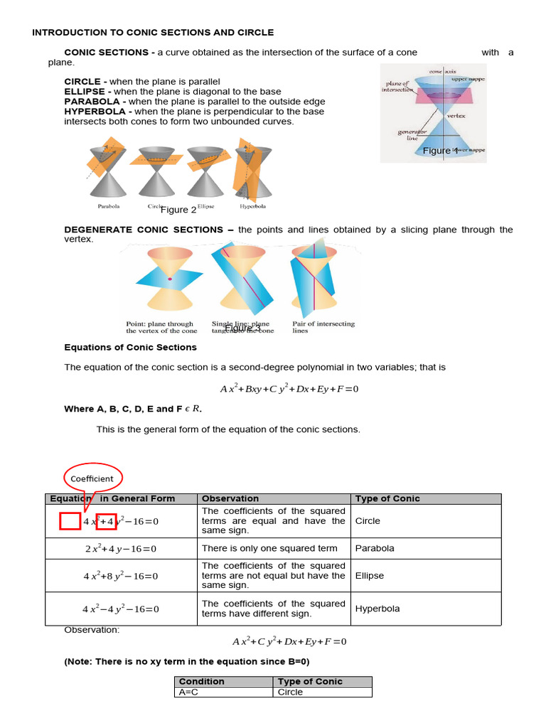 SOLUTION: Pre calculus Conic Section Notes Reviewer Grade 11 - Studypool