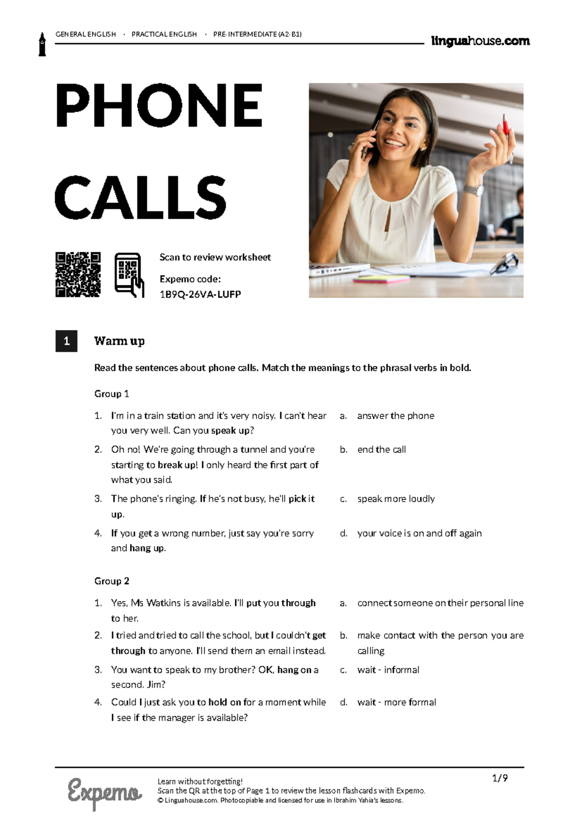 PRE-INTERMEDIATE (A2-B1) PHONE CALLS - TEACHER MATERIALS - Studocu