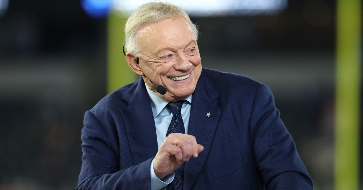 Jerry Jones nearly falls at podium, introduces former President Bill ...