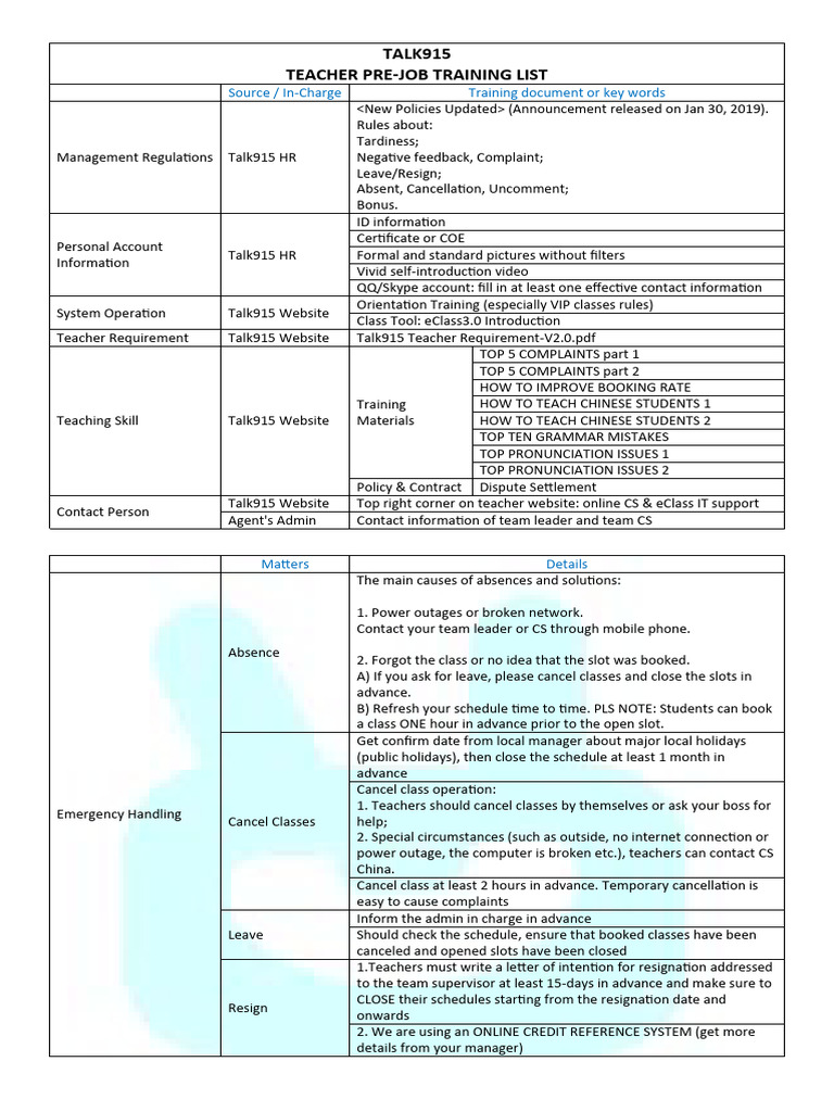 Staff Pre-job Training Curriculum Excel Template And Google Sheets File ...