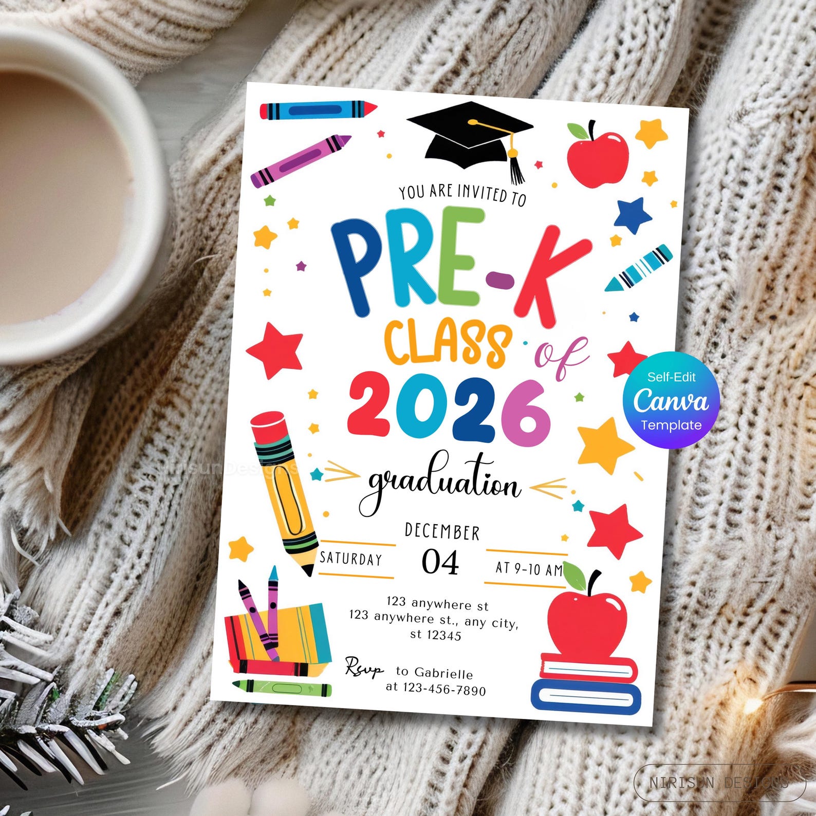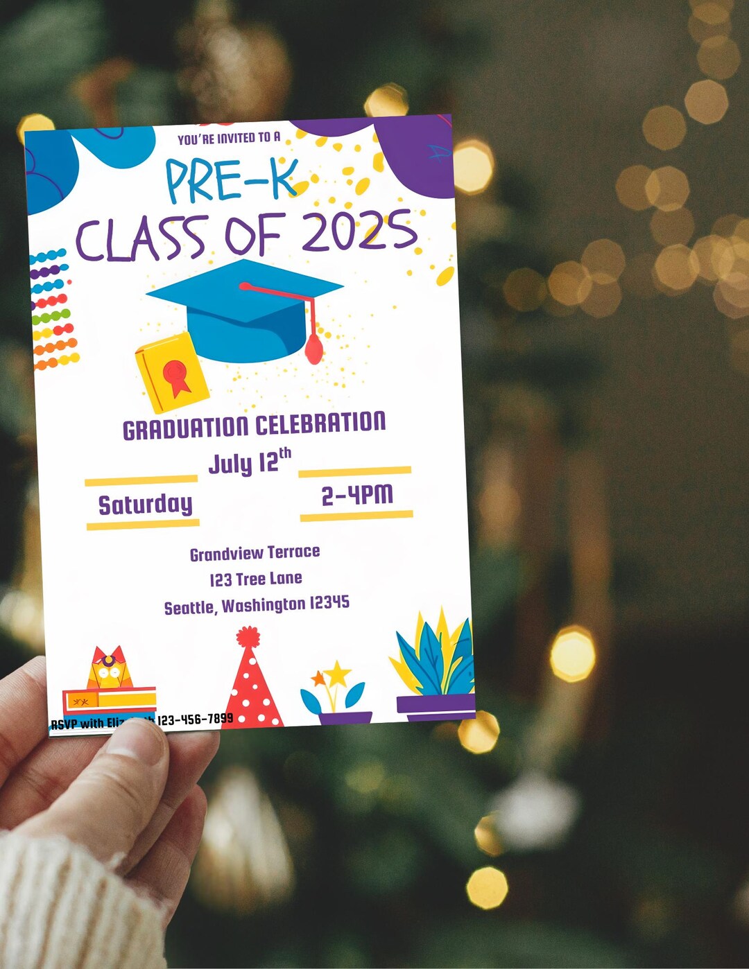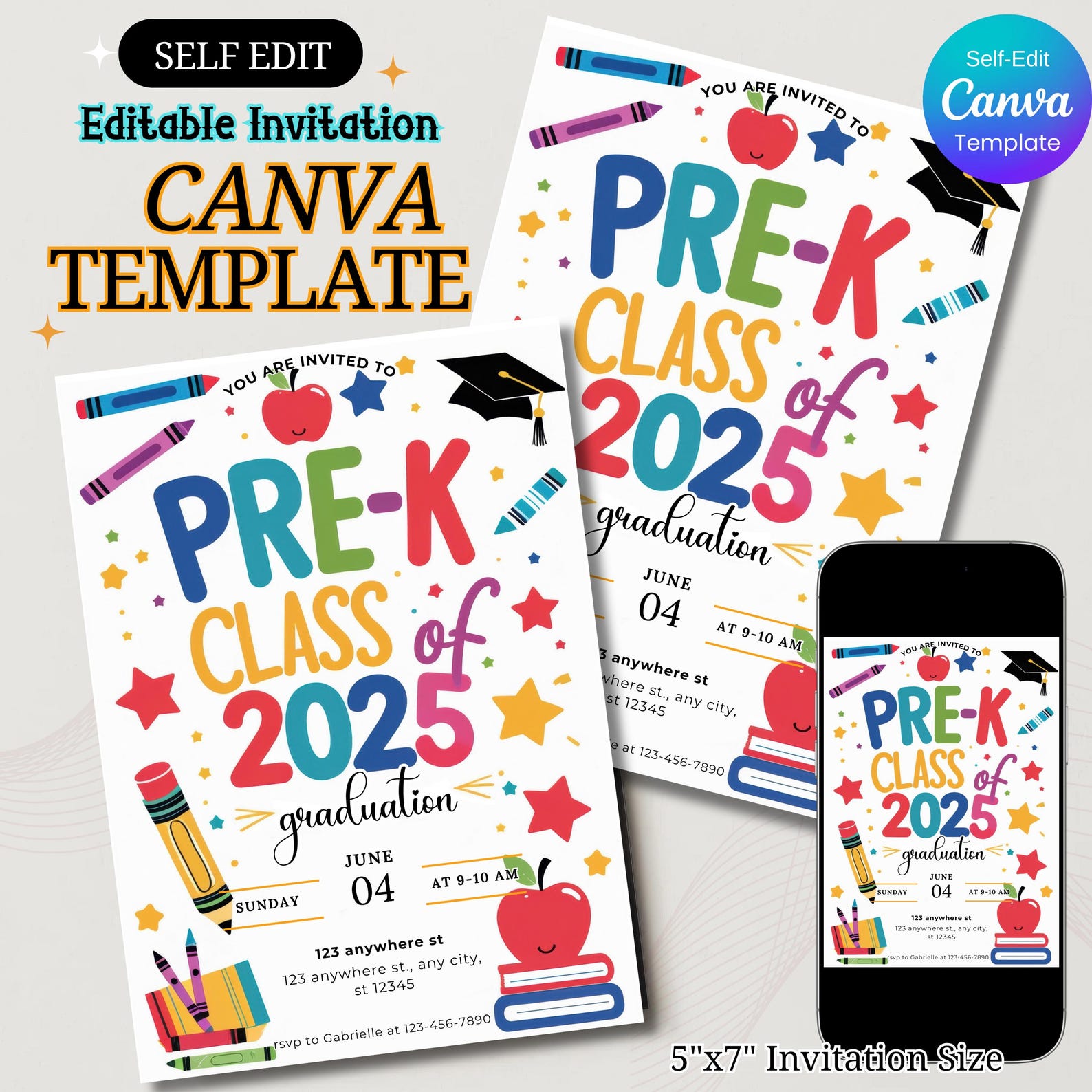 Pre-k Graduation Invitation: Class of 2025 Editable Template (digital ...