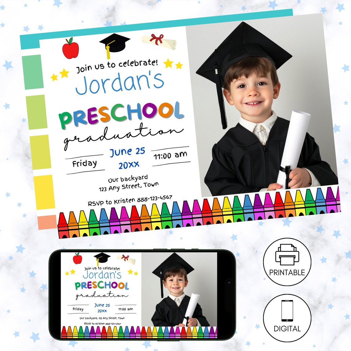 Preschool Graduation Invitation, Editable Pre-k & Kindergarten ...