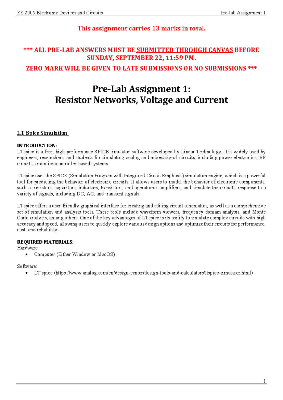 Pre Lab 1 - Pre-lab assignment - /BNF %BUF 5" -BC 5JNF %FTL Experiment ...