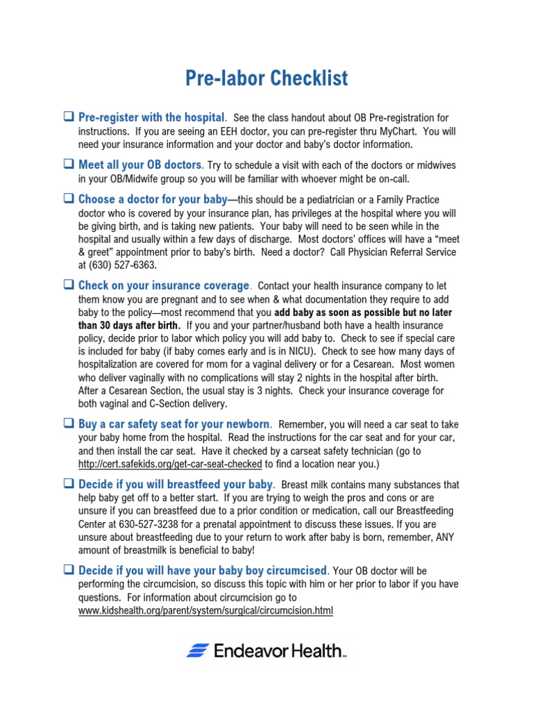 Pre Labor Checklist 2024 | PDF | Breastfeeding | Childbirth