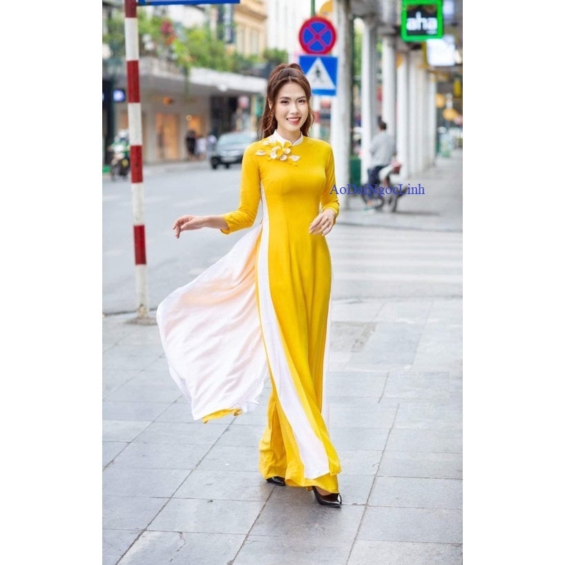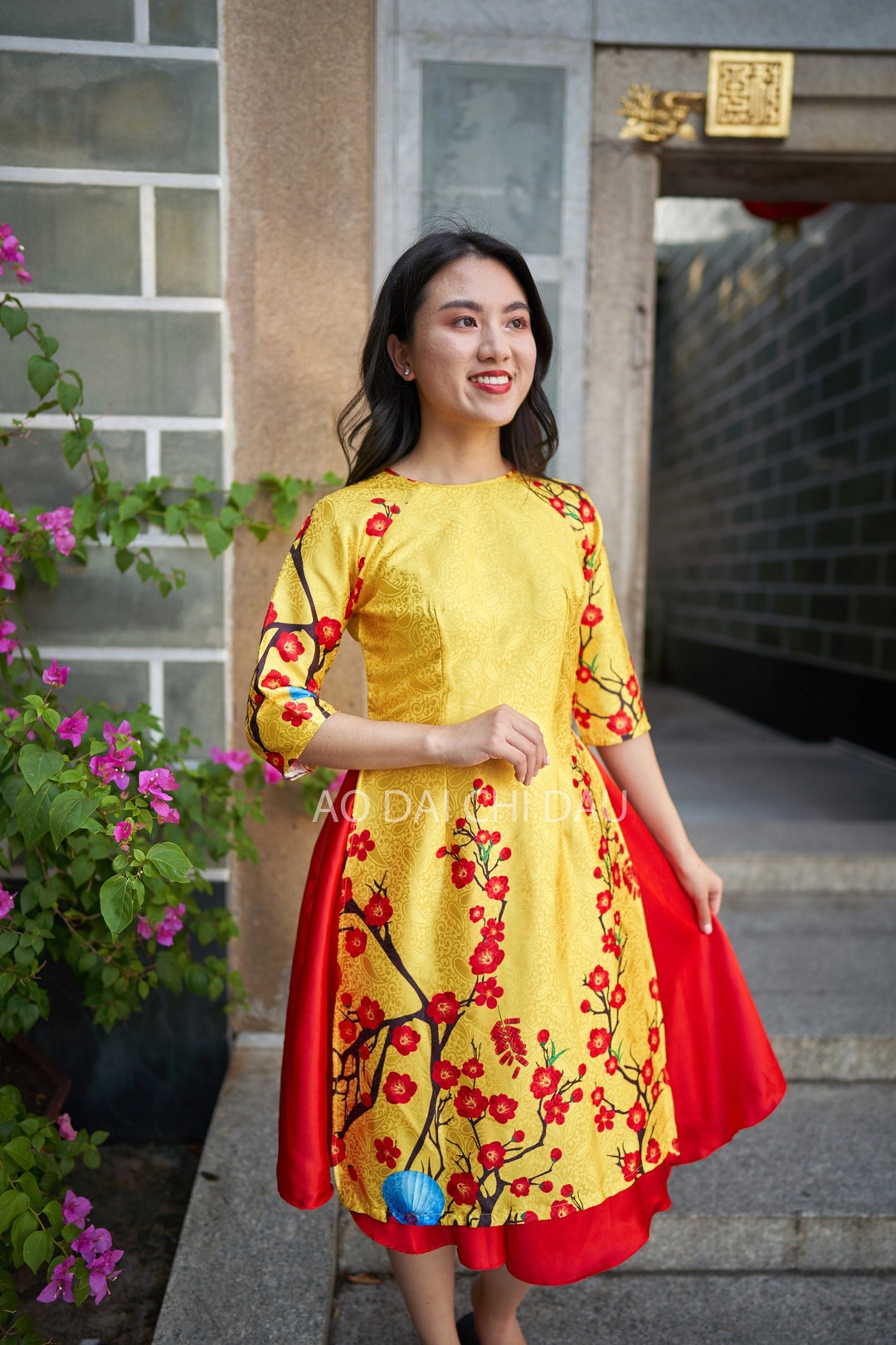 Pre-make Vietnamese Traditional Ao Dai, Yellow Ao Dai, Flowered Ao Dai ...