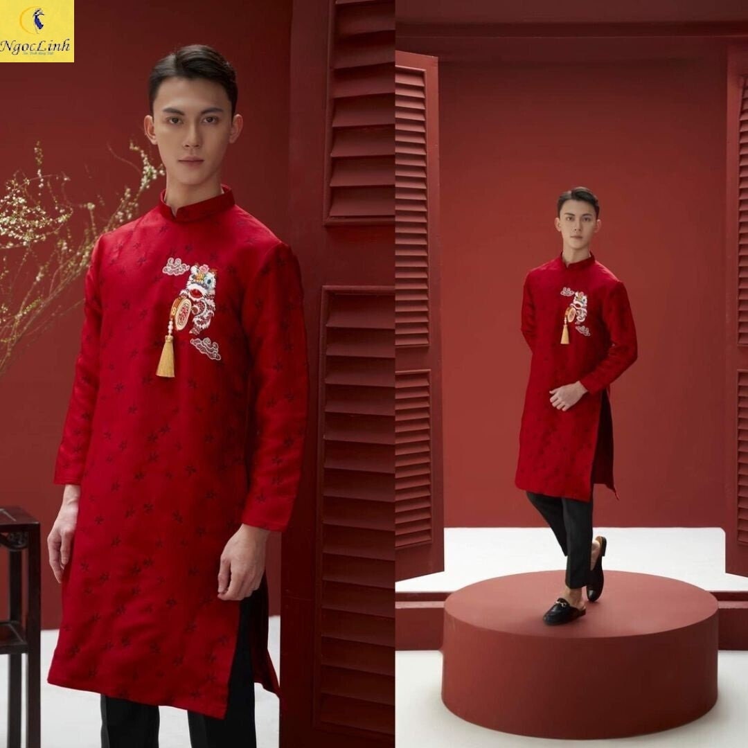 Pre-make Vietnamese Traditional Ao Dai, Innovative Red Men's Ao Dai ...